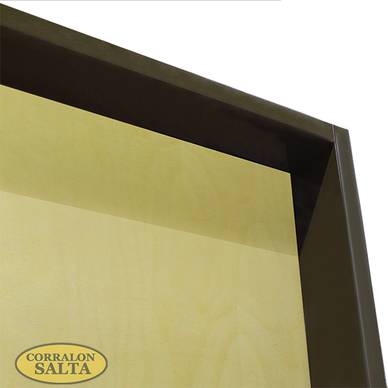 Enchapada en sabuguero sobre MDF de 3 mm y con cantos laterales enchapados. Ideal para uso interior en hogar.
